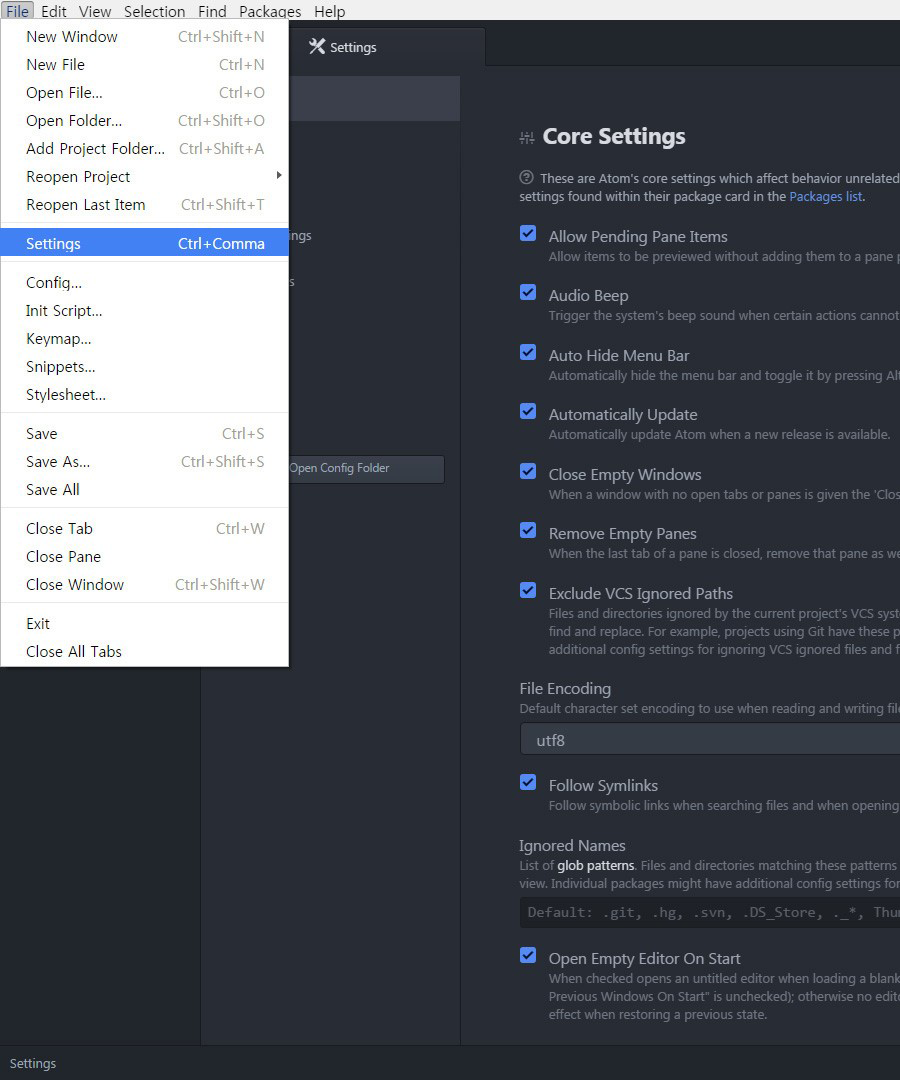 아톰에디터에서는 다양한 패키지(플러그인)들을 설치할 수가 있어요