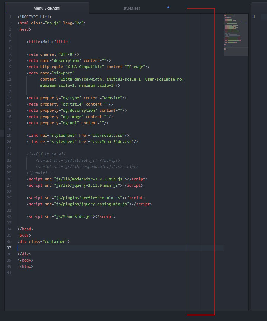 * 오른쪽의 빨간박스로 표시한 부분이 미니맵. 코드가 길수록 유용한 패키지에요!