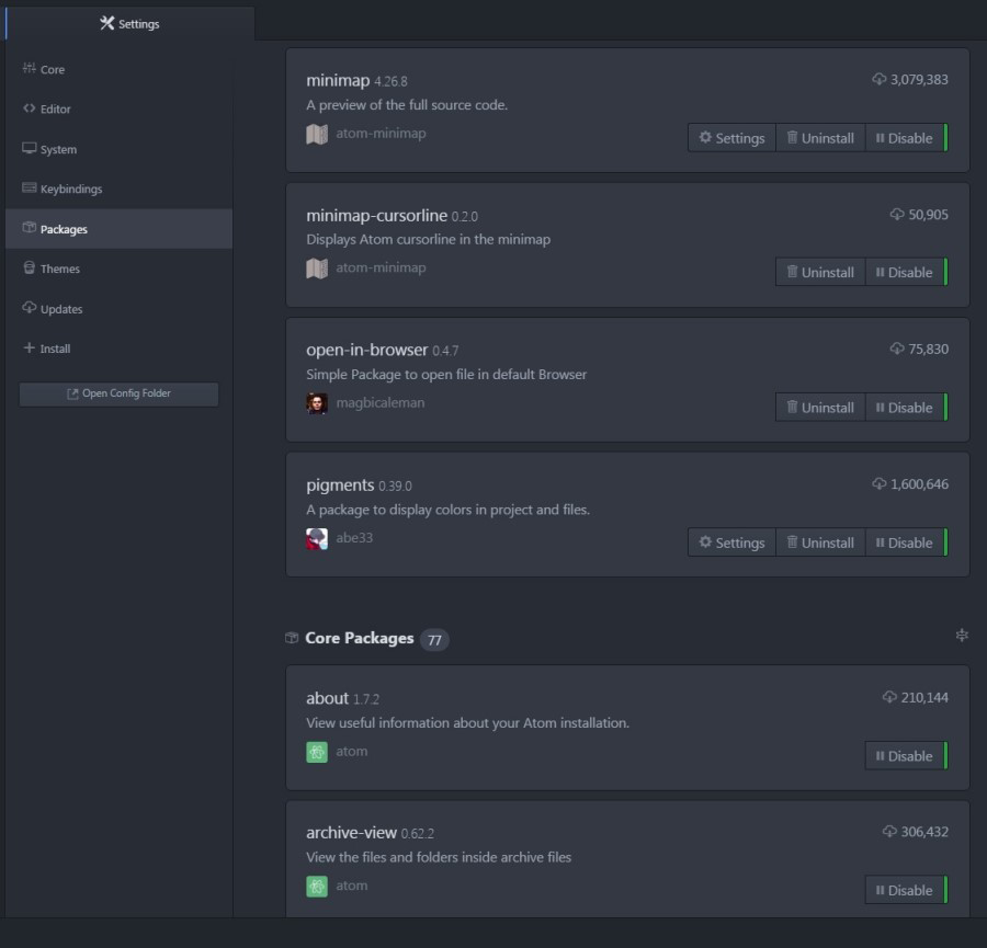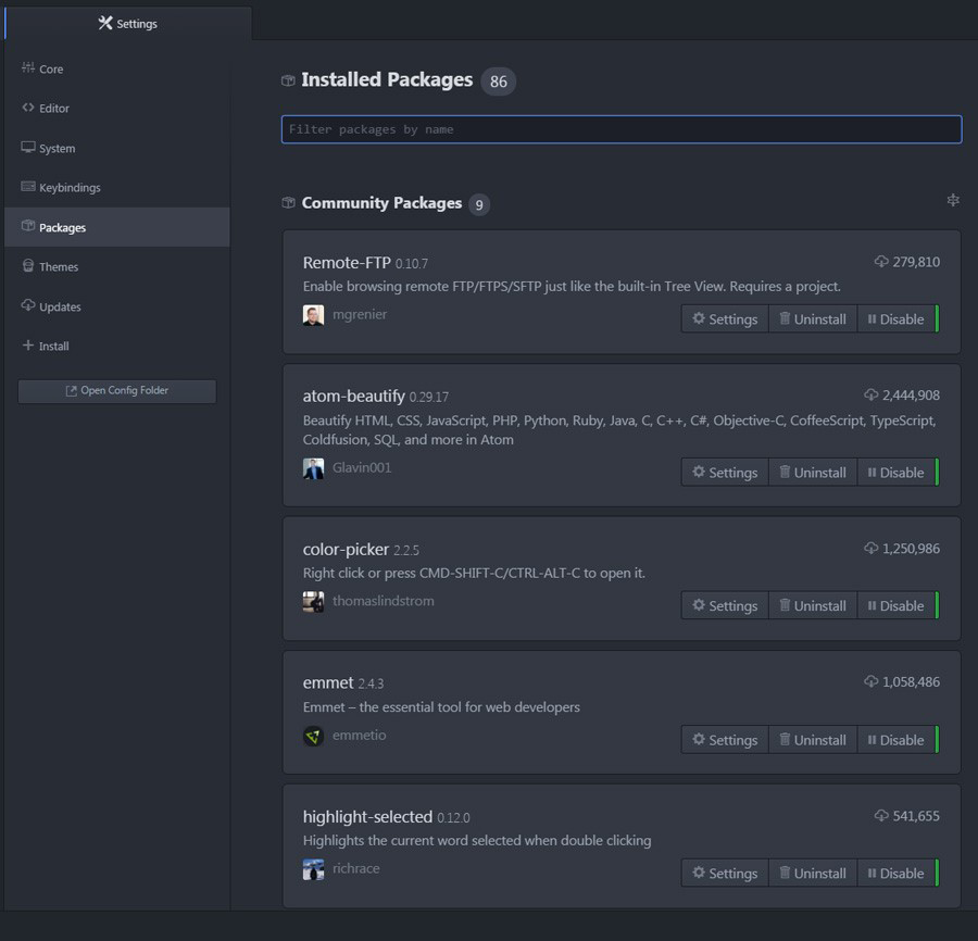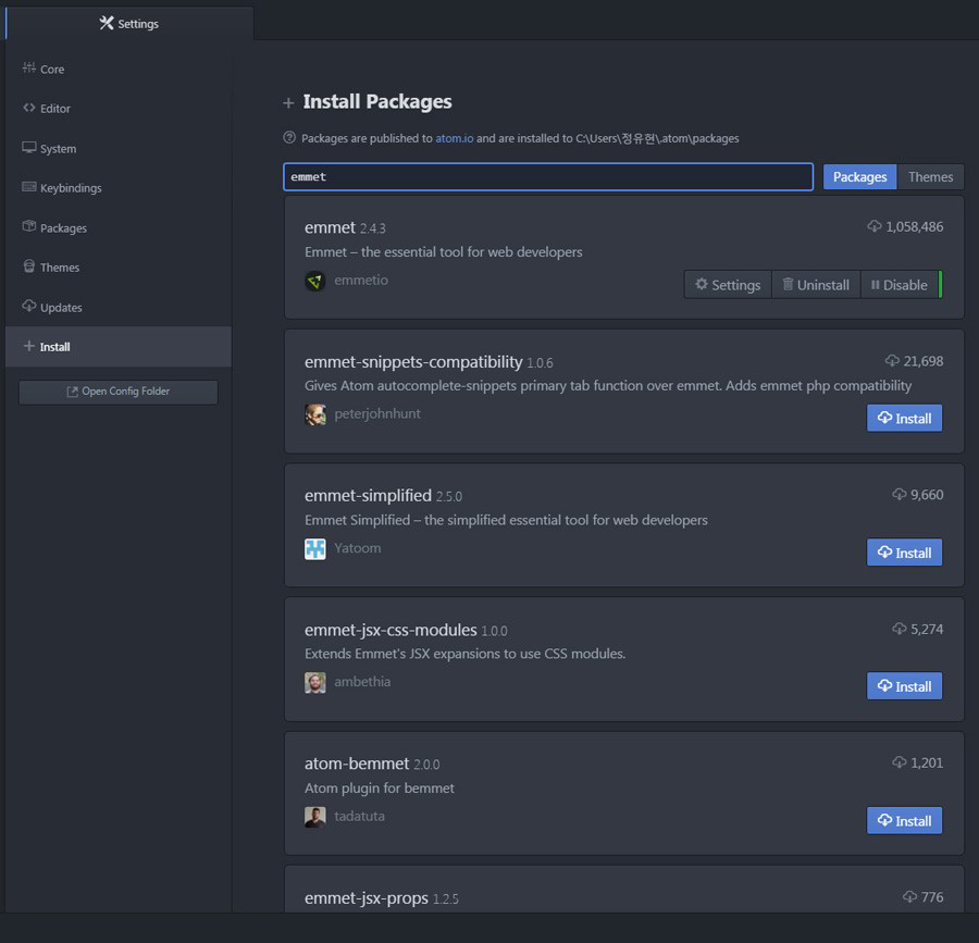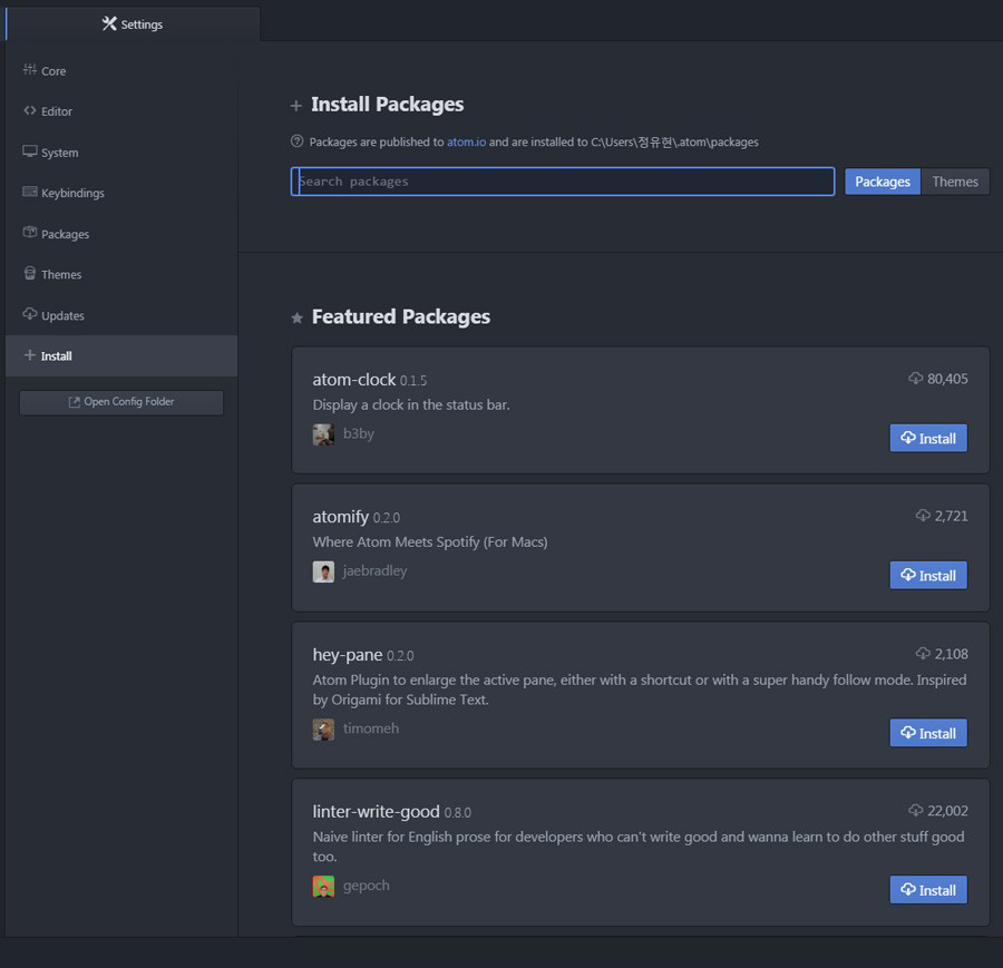 아톰에디터에서 많이 쓰이는 패키지 몇 개를 추천드리겠어요~