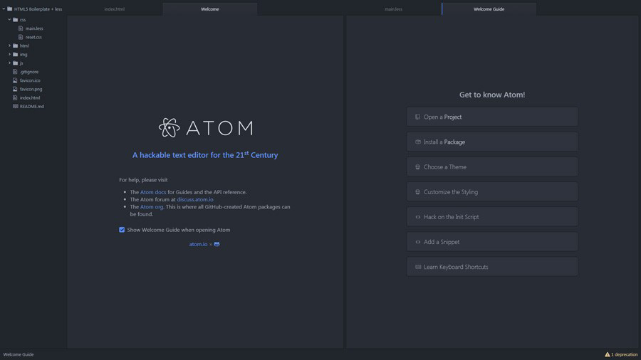 아톰을 실행하면 기본적으로 이런 화면 구조에 나오게 돼요