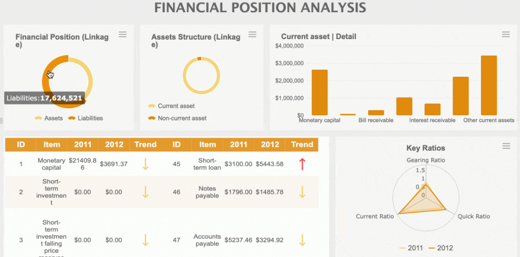 다자이너에게 대시보드 디자인의 가장 중요한 부분은 핵심 숫자와 내용을 직관적으로 나타내는 것입니다. 이 대시보드 디자인 사례는 뛰어난 데이터 시각화를 특징으로 합니다. 사용자가 파인차트와 선 차트를 클릭하면 더 많은 내용을 볼 수 있습니다. 직관적인 차트를 사용하여 올(all) 대시보드 데이터를 보여줄 수 있습니다.