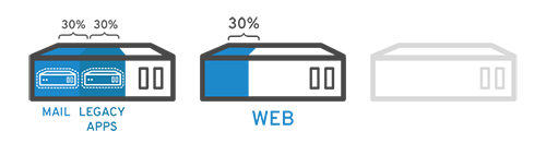 예를 들어 다음과 같이 세 개의 물리 서버가 있는데 사용량이 크지 않은 경우를 봅시다.