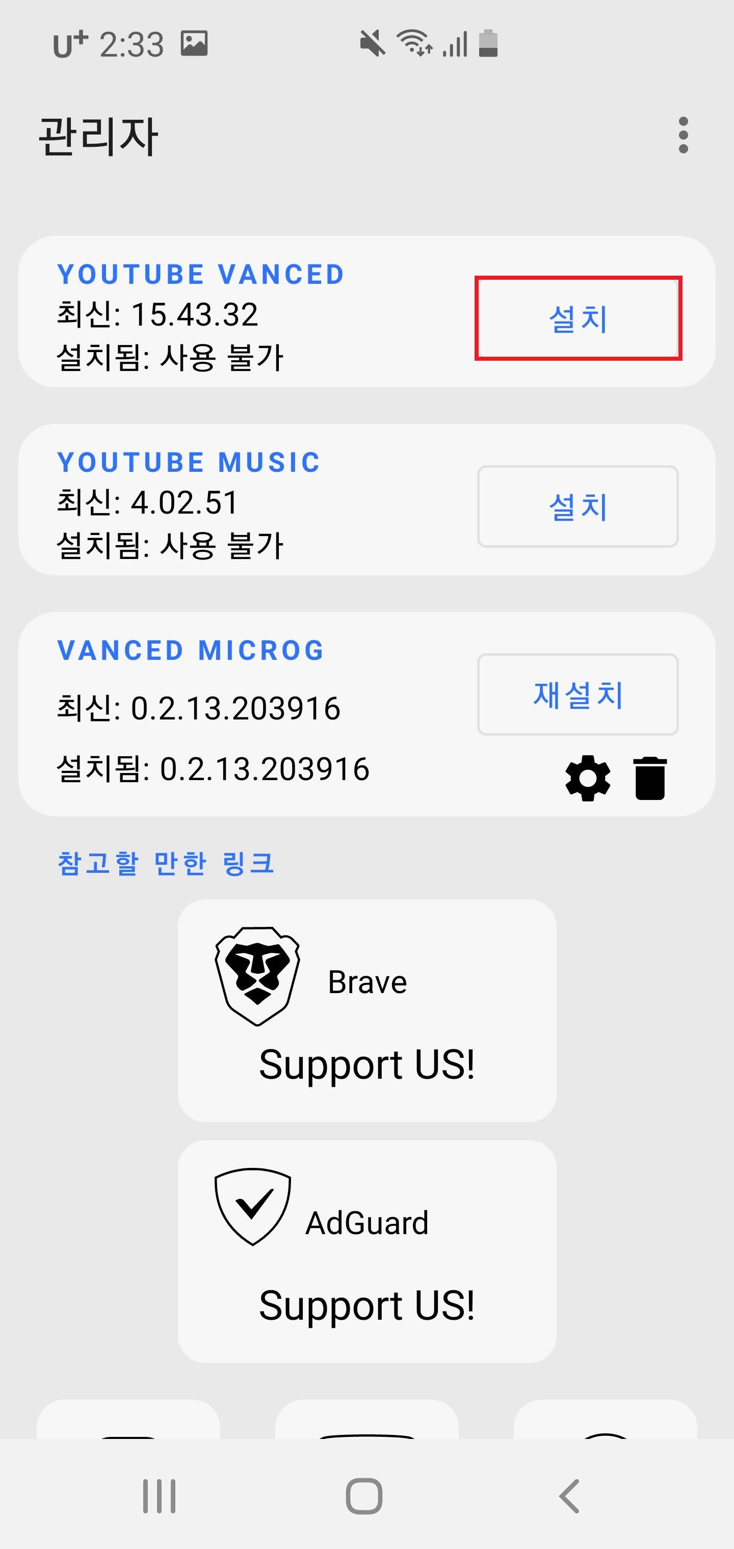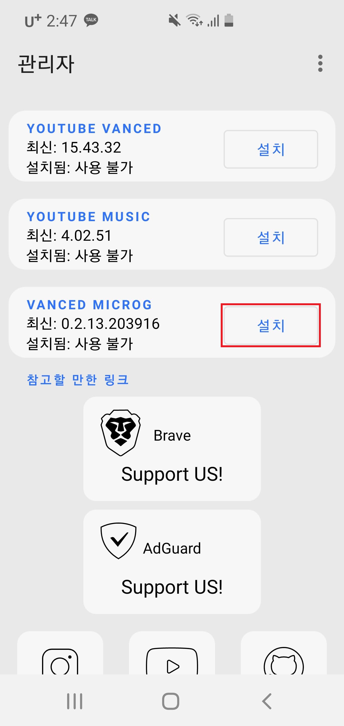 이제 vanced manger를 이용하여 youtube vanced와 microG를 설치해보자.