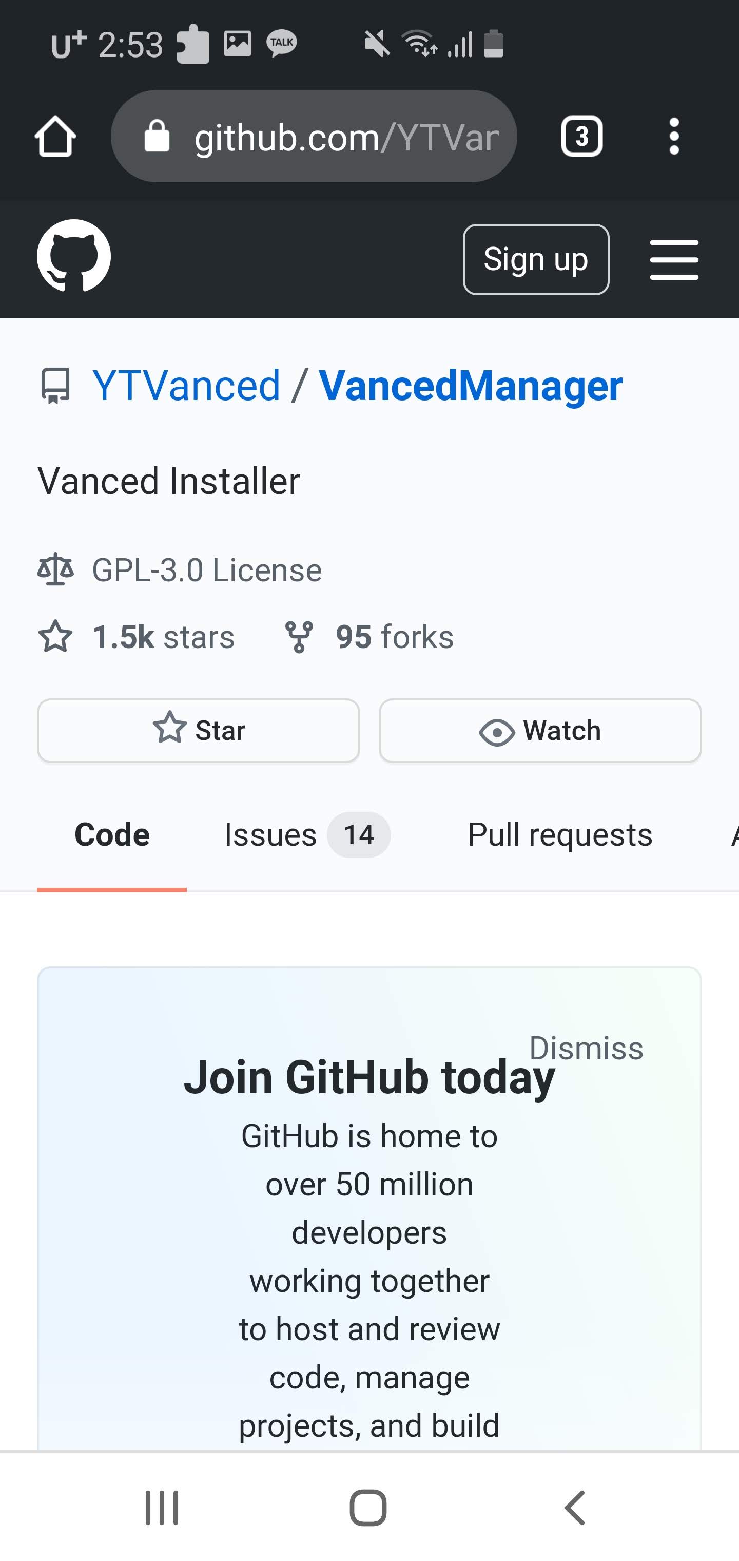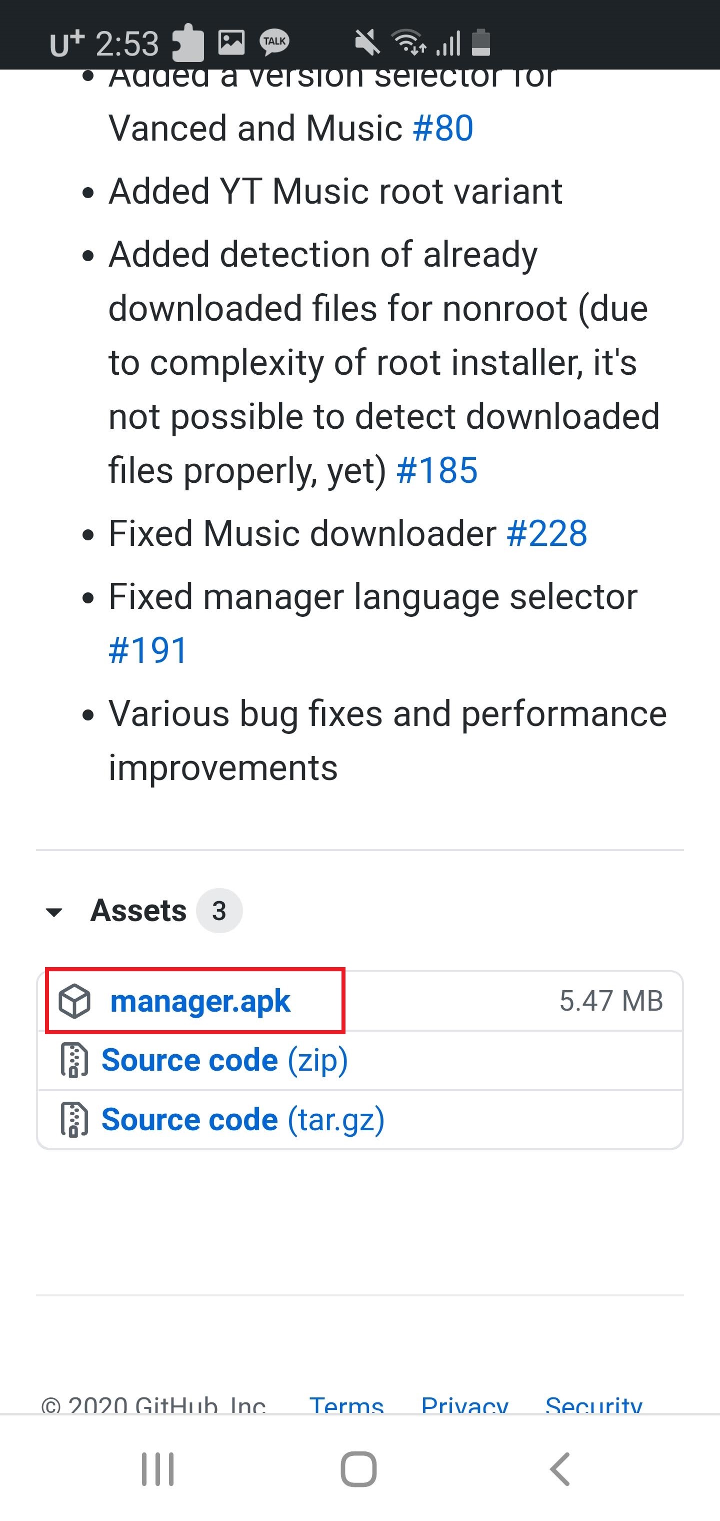 2. 첫화면에서 아래로 스크롤하여 Releases 아래의 Vanced Manager에 들어간다.